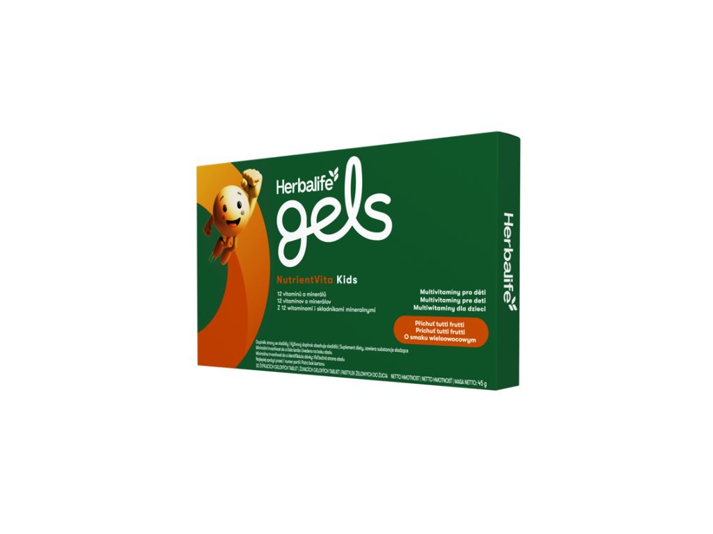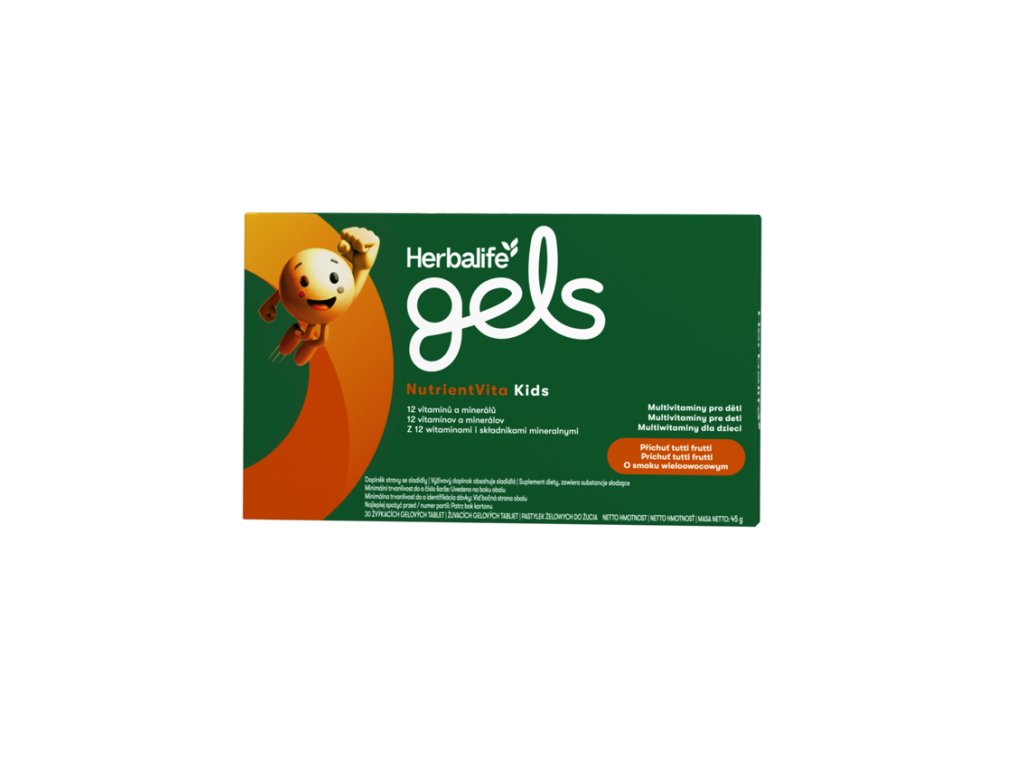 Podpořte růst a zdraví svých dětí s Herbalife Gels NutrientVita Kids. Tyto chutné žvýkací gelové tablety s ovocnou příchutí jsou navrženy tak, aby poskytovaly důležité živiny pro rostoucí tělo. Každá tableta obsahuje 12 vitamínů a minerálů, včetně jódu pro normální růst, vitamínu D pro vývoj kostí a vitamínu C pro podporu imunitního systému. NutrientVita Kids jsou skvélé pro každodenní zdraví dětí a mají přírodní barviva.